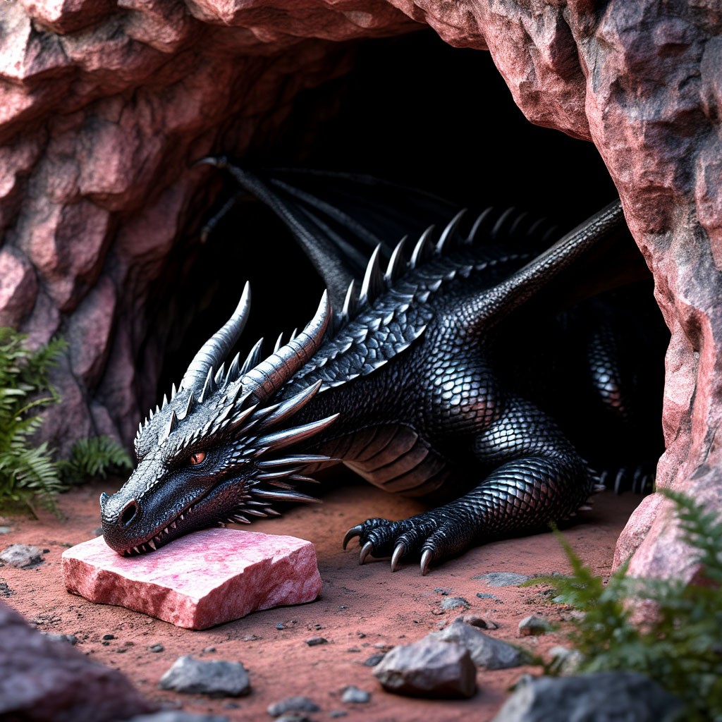 Каждое утро Уголёк выходил из своей пещеры на солнечную полянку, чтобы насладиться завтраком. А завтрак у него был особенный – не принцессы и не овцы, а большие, хрустящие, покрытые мхом валуны, которые он с наслаждением хрумкал, как конфетами.