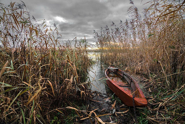 На берегу темнеет лодка