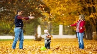 Впереди, метров за 30, вижу пару молодых людей и с ними маленького ребенка, издали не рассмотреть мальчик или девочка, но явно только делающие первые шаги. Родители с удовольствием наблюдают, как он топает по опавшим листьям. в своих крохотных сапожках, комбинезончике и шапочке.