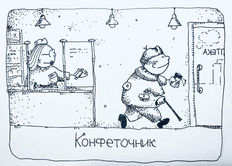 Больше старик Конфеточник не появлялся в этой аптеке, и аптекарша не заметила - она была счастлива и не могла объяснить свалившегося на нее счастья.