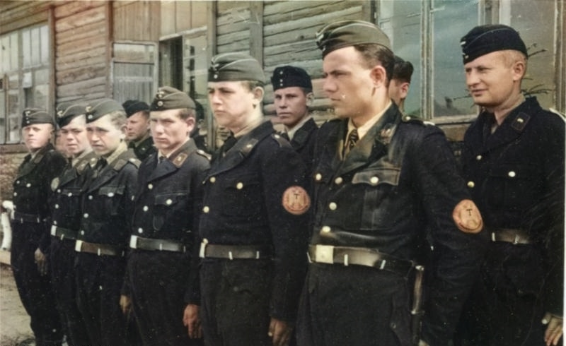 В Киеве в этой комендатуре немцы создали отряд вспомогательной лагерной полиции из украинцев. Снабдили своей списанной униформой полевого цвета, вот в ней и щеголяли.