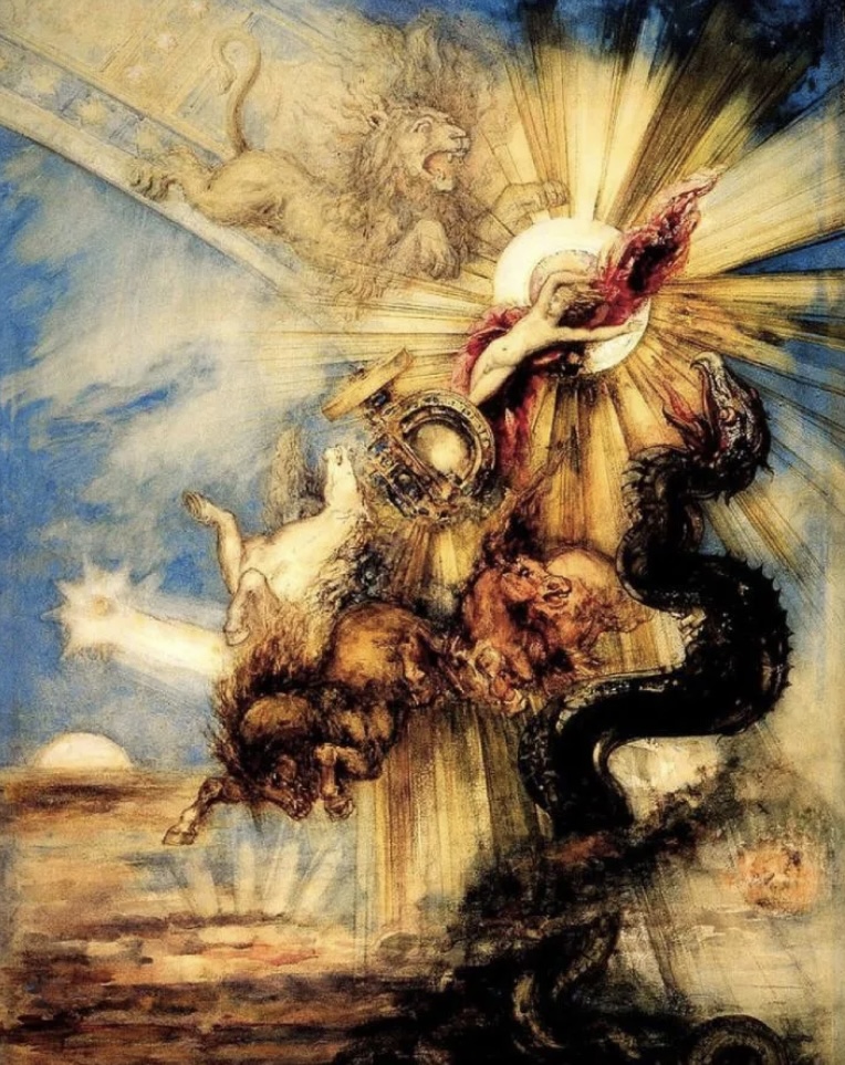Моро продолжил там, где остановились Делакруа и Шассерио, доведя свою романтическую реакцию против Науки и Рациональности до ее завершения: полного отступления внутрь, вдали от внешнего мира.
