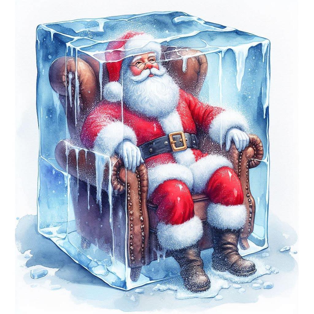 Дед Мороз сел в своё кресло, ещё больше загрустил и замёрз. Он превратился в ледяную статую. Но одна только Снегурочка (внучка Деда Мороза) не стала падать духом. Она поспешила искать помощи.