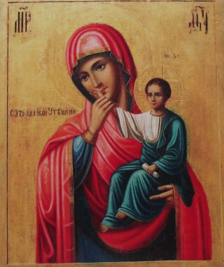 На Афоне есть удивительная икона, которая называется «Отрада и утешение». Именно эта икона рассказывает о великой любви Царицы Небесной к грешникам. К нам то есть... На этой иконе Богоматерь отнимает от Своих губ руку Младенца Христа. Вот короткая история этого события: