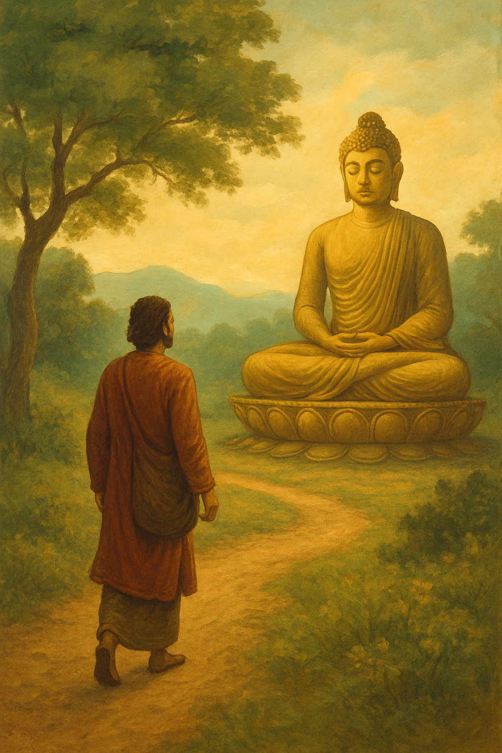 Он сел под деревом, у которого когда-то проходила его дорога, и закрыл глаза. Ветер касался его лица, и каждый порыв был как слово, которое произносит сама Земля. Внутри не было ни мыслей, ни желаний, ни памяти — только ясность, в которой всё соединено. Он понял, что Будда — не учитель, не бог и не цель. Будда — это то, что всегда было в каждом дыхании, в каждом движении, во всём, что живёт и умирает.