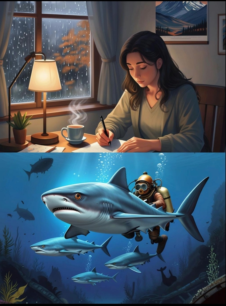 - Аллегория смерти или потери смысла: «акулы» как неизбежность, а глубина — забвение.
