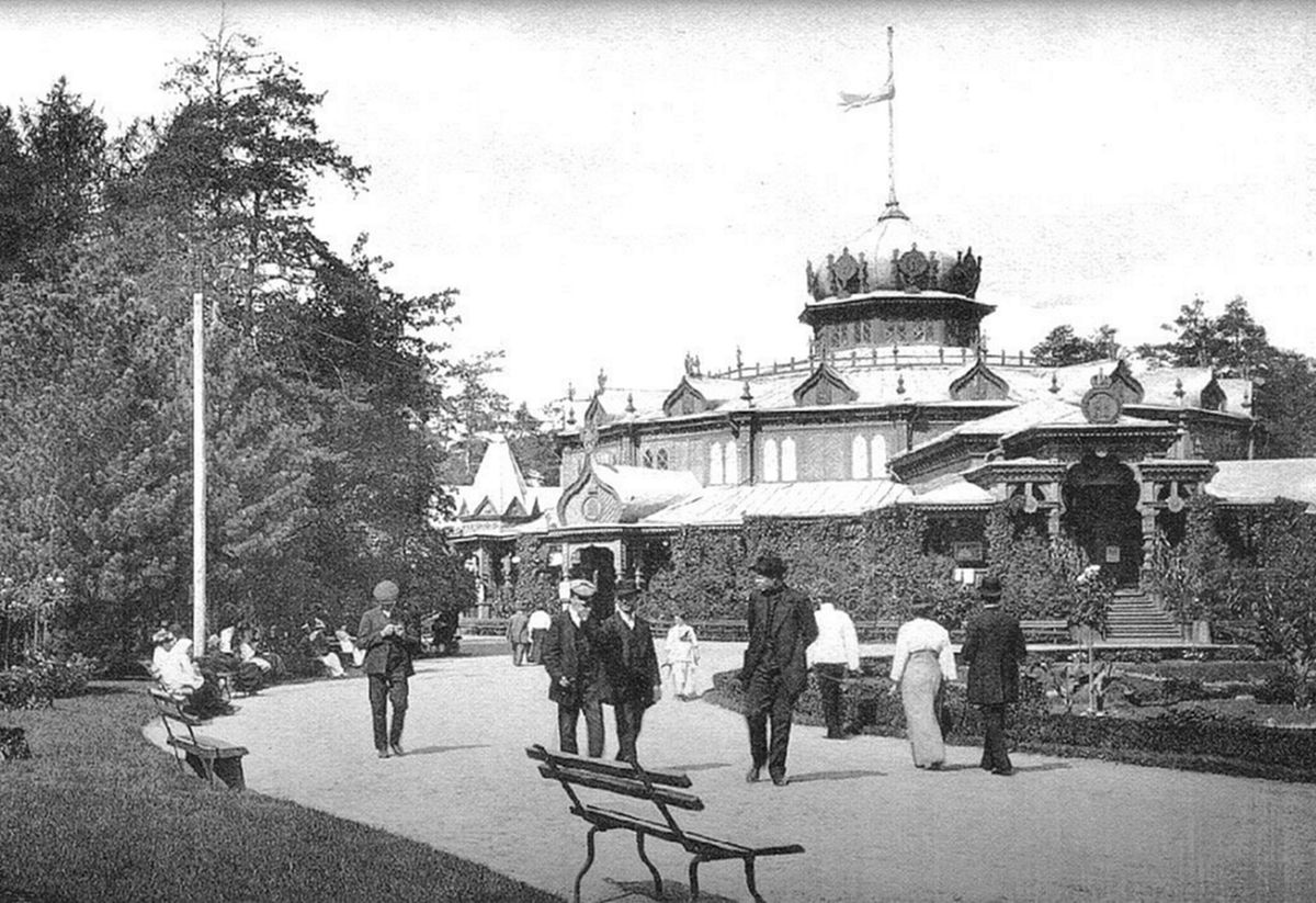 Иллюстрация: 1908-1918. Москва. Сокольничий парк. Прогулка по дачному кругу у Царского павильона в Сокольниках. Фото начала XX века.