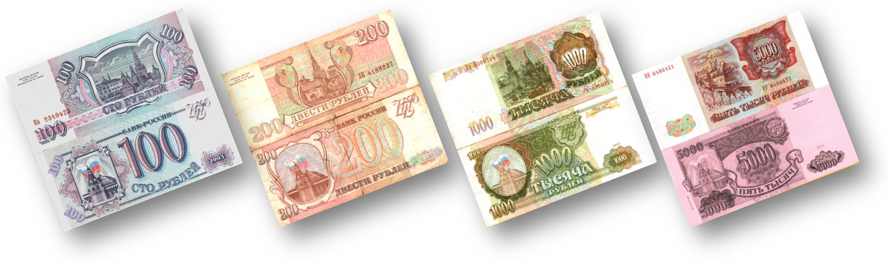 В наличноденежном обороте на территории Российской Федерации остаются банкноты Банка России образца 1993 года достоинством 100, 200, 500, 1000, 5000, 10000, и 50000 рублей и металлическая монета СССР и Банка России образца 1961 и последующих годов.