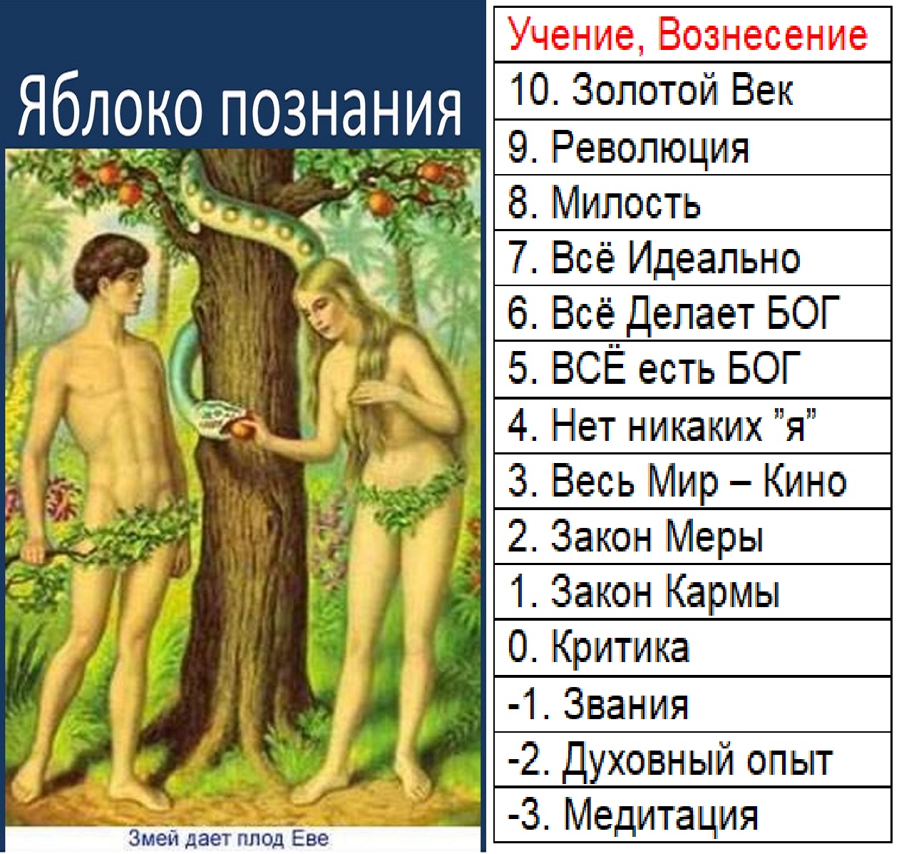Пункты 3-10 – это Рай. Адам и Ева вкусили запретный плод с Древа Познания добра и зла, и опустились в ад. В Раю они знали только добро, но вот от Змея узнали и про зло. В Детстве это происходит с каждым. Ад – это отделение от Единой Воли БОГа в свою свободную волю, в самоВолие, во всеДозволенность, безНаказанность, Эгоизм,…