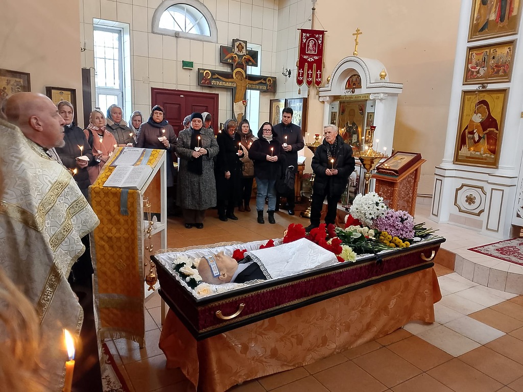 Отпевали новопреставленного раба Божьего Евгения в тверском храме блаженной Ксении Петербуржской. Заупокойный чин отслужил протоиерей Виталий Григорьевич Казаченко (см. на фото). Похоронили Евгения Николаевича на общественном кладбище близ деревни Черногубово Калининского муниципального округа.