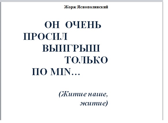 - А ты знаешь, Боря, я как-то просил судьбу о выигрыше в лото только по minimumu! Понимаешь, не более стоимости билета,– Сергей Прокопьевич смущенно улыбнулся, и у него при этом даже немного задергался глаз.