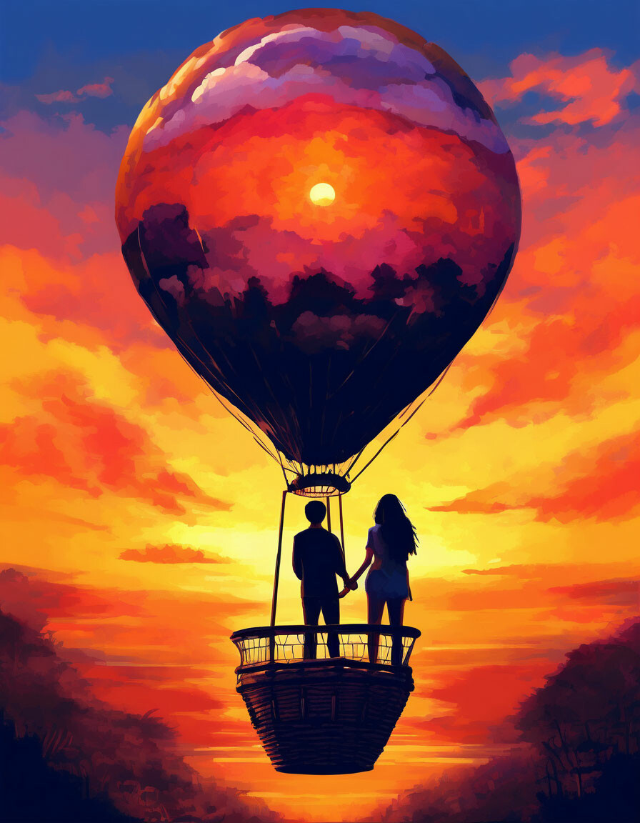 Давай оторвёмся от земли, держась за руки, вместе глотая адреналин, сердца, словно барабаны, будут стучать в такт нашей любви, мы вместе под облаками, нежность едим глазами, тёплые объятия на двоих, пусть не закончится этот миг.