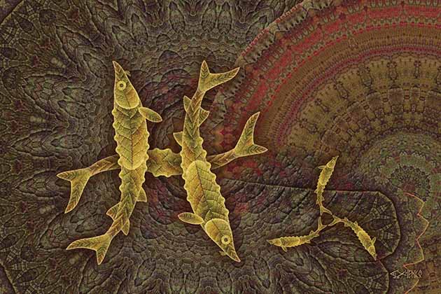 Рыбы созданы Байкальскими осенними листьями в фотошопе. Это сложный фотомонтаж, которому нет аналогов в мире. Из фондов Избушки Волшебных Традиций на Байкале в Листвянке.