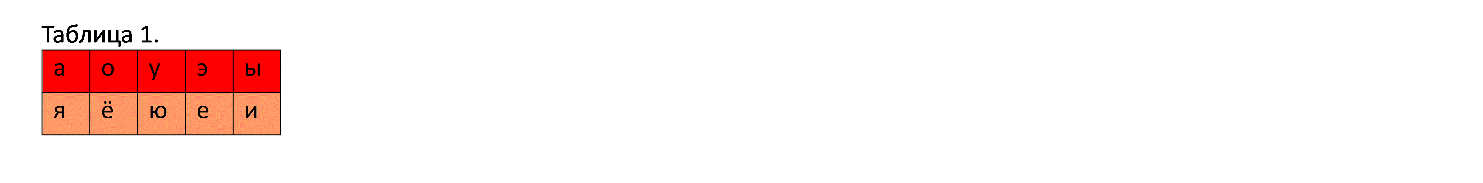 Верхний ряд на красном фоне в представленной таблицэ заняли гласные буквы твёрдых гласных звуков русской речи {а}, {о}, {у}, {э}, {ы}.