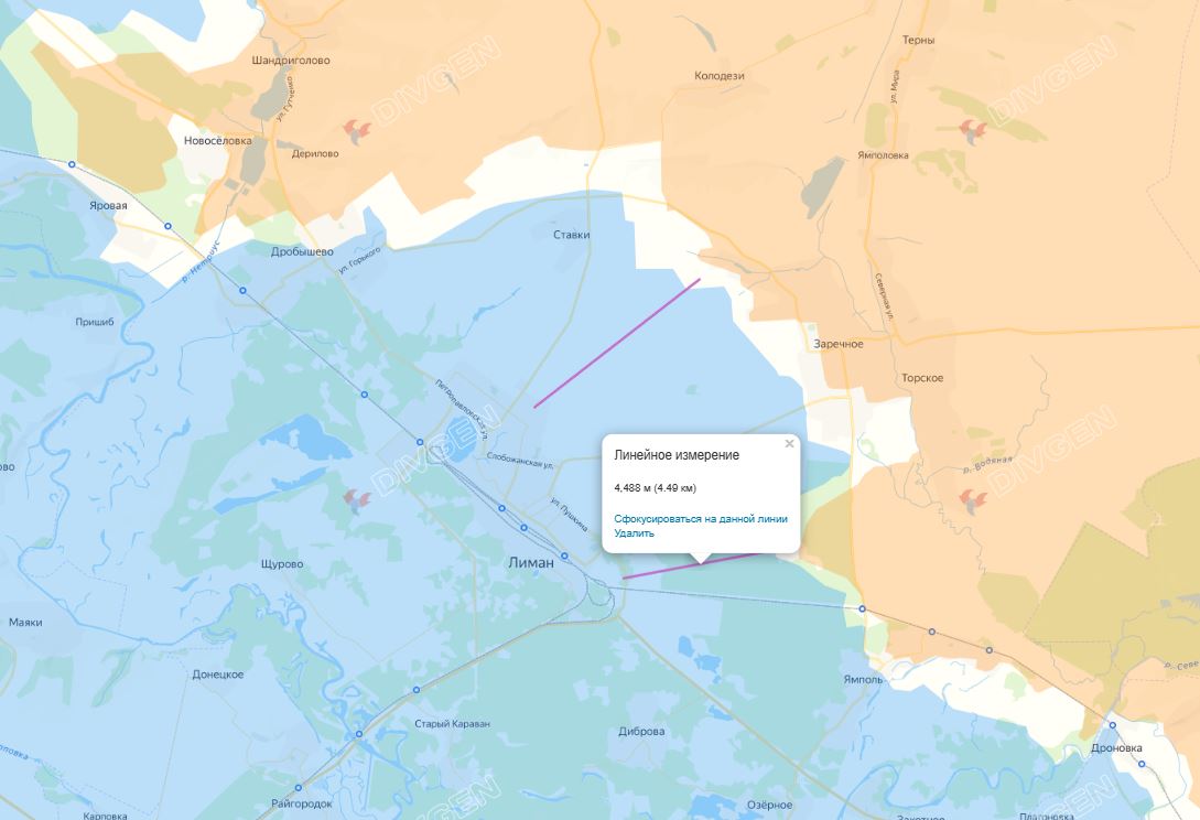 Восточнее наши подошли к селу Ставки, от которого напрямую к Красному Лиману всего 5,5 км. и закончили работу по Заречному (нас до войны – 3376 чел.). Таким образом все пространство до Кременнйо до западной границы Заречного перешло под наш контроль.