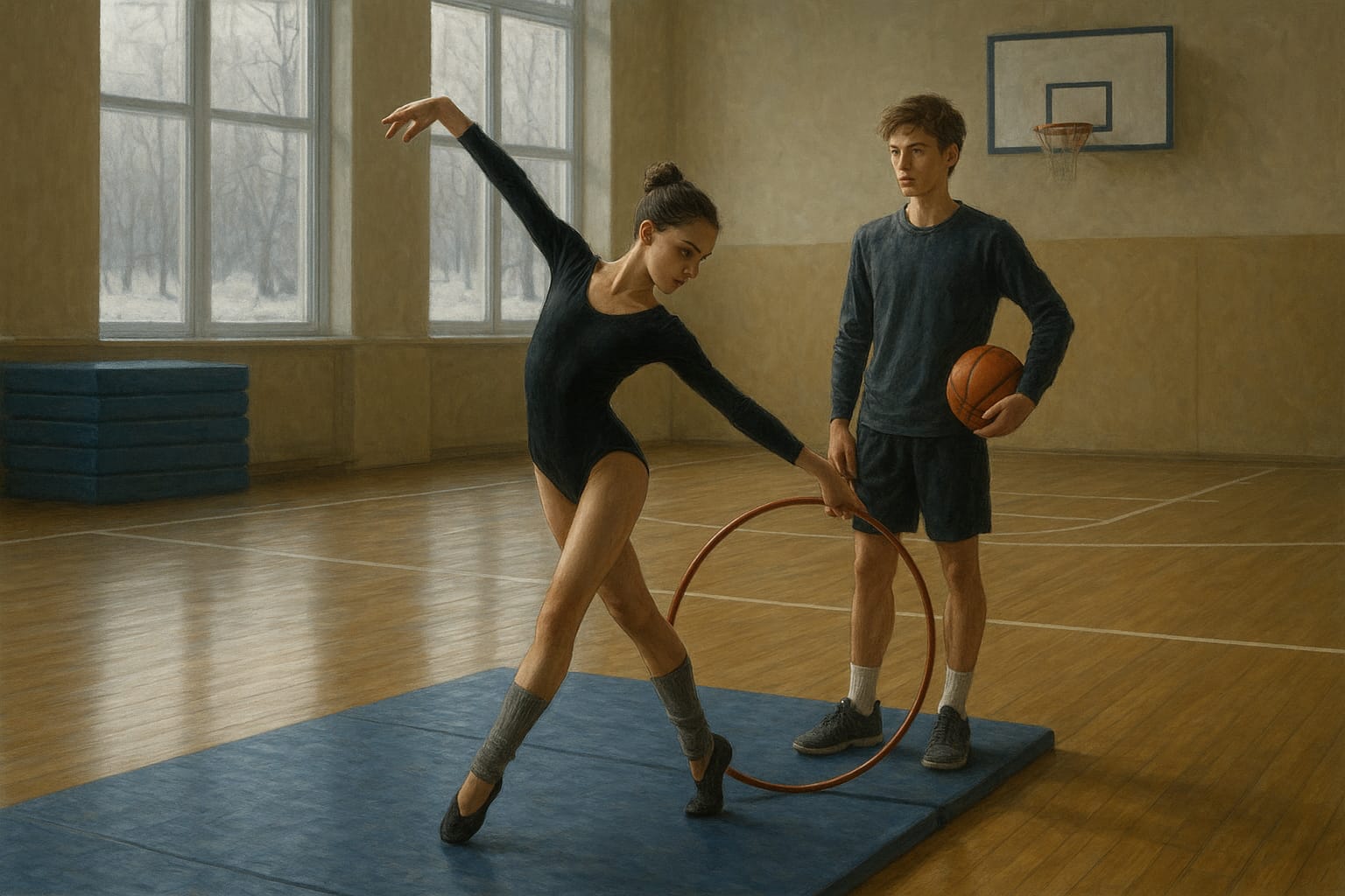 Окончились праздники. Дети и студенты снова вереницей побрели на занятия. Ожили улицы, засновал набитый общественный транспорт. В зале, разделенном сеткой, снова стало шумно и суетливо. На одной стороне скрипели прорезиненные подошвы и бесконечный плеск мяча об пол. На другой стороне зала звучала музыка, мерцали ленты, подбрасывались обручи, вились под потоком плотные жгуты скакалок. Попеременно перекрикивали друг друга тренеры. Все, казалось бы идет своим привычным чередом. Никто поначалу, кроме меня, не заметил перемен. В этом зале я появляюсь первый. После праздников я стал замечать, что за два часа до занятий в зал приходят те самые двое. Саша таки серьезно настроился отомстить Ясмине за дерзость. Ясно было как божий день, что Диана не так влюблена в спорт, как Ясмина. Для нее есть в жизни вещи и поважнее, особенно сейчас, когда у нее завязались первые в ее жизни отношения с парнем. Но по настоянию Саши она приходила в зал пораньше и усердно тренировалась, пока Саша пристально за этим наблюдал со стороны, ласково поддерживая ее и поправляя. Он хоть и не гимнаст, но продолжительное соседство с этим видом спорта чему-то его да научило.