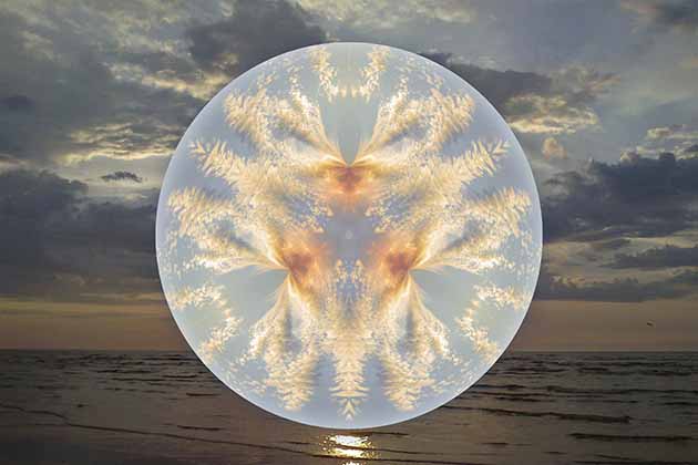 Небесный круг создан в фотошопе снимками неба и воды. Это сложный оригинальный фотомонтаж. Из фондов Избушки Волшебных Традиций на Байкале в Листвянке.