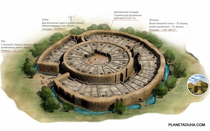 Одну из них мы уже нашли - это Аркаим(рисунок сверху). "Аркаим (русский: Аркаим) - укрепленный археологический памятник, датируемый ок. 2150-1650 гг. до н.э., относящийся к синташтинской культуре, расположенный в степи Южного Урала, в 8,2 км (5,10 миль) к северо-северо-западу от села Амурское и в 2,3 км (1,43 мили) к востоку-юго-востоку от села Александровское в Челябинской области России, к северу от границы с Казахстаном. Он был обнаружен в 1987 году группой археологов, которая позже перешла под руководство Геннадия Здановича. Осознание его важности беспрецедентным образом предотвратило запланированное затопление территории для создания водохранилища. Строительство Аркаима приписывают ранним носителям протоиндоиранского языка из синташтинской культуры, которые, по мнению некоторых учёных, представляют собой протоиндоиранцев до их разделения на различные группы и миграции в Центральную Азию, а оттуда на Иранское нагорье, Индийский субконтинент и в другие части Евразии."[англоязычная Википедия: Аркаим]