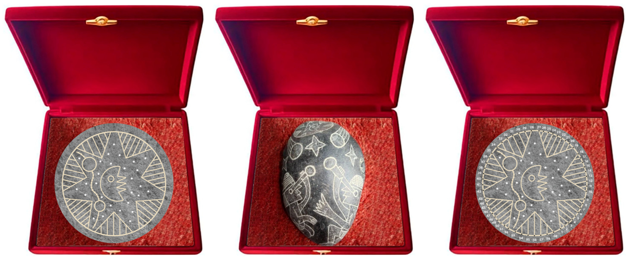Здесь показана отрисовка и нумерация элементов календарно-астрономической записи, запечатленной на камне-андезите, который назван «яйцо ика».