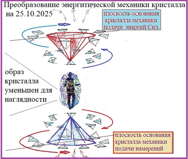 2. Энергетическая механика Кристалла в виде ТРЁХгранных пирамидальных форм (были и 4-х-гранные) с количеством числа граней кристалла подачи Энергий СИЛ в мышление человека. Граней 8! В полях вокруг этих кристаллов по 8 вращающихся вокруг пирамидных структур подачи Энергий двумя полями. (см. рисунок в иллюстрации)