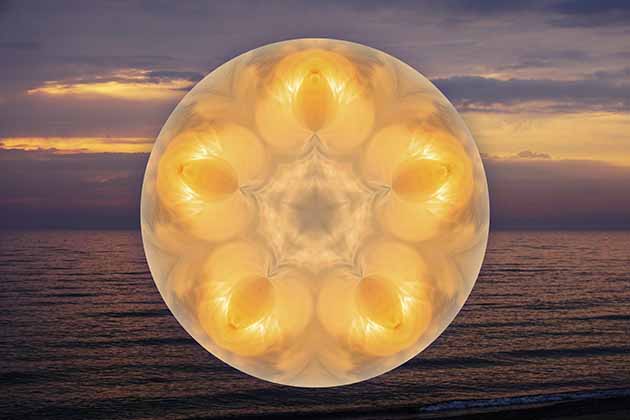 Небесный круг создан в фотошопе снимками неба и воды. Это сложный оригинальный фотомонтаж. Из фондов Избушки Волшебных Традиций на Байкале в Листвянке.
