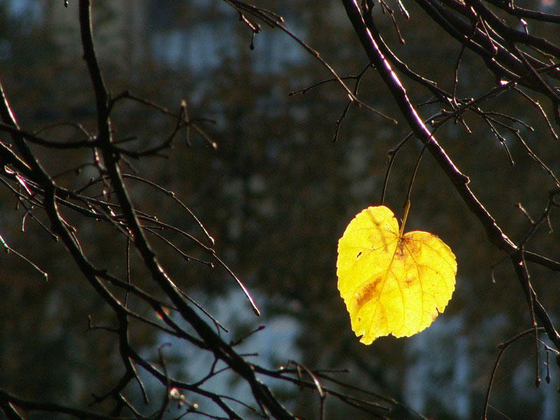 Среди них выделяется одинокий листок, который, словно потерянный путник, дрожит на тоненьком черешке.