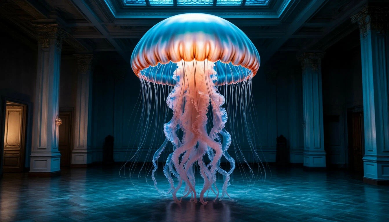 В центре комнаты в воздухе плавно парило огромное, совершенно прозрачное создание, напоминающее медузу, с множеством переливающихся щупалец. Вера заворожённо смотрела на это невероятное существо. Оно медленно приблизилось к ней, и одно из его щупалец нежно прикоснулось к её виску.