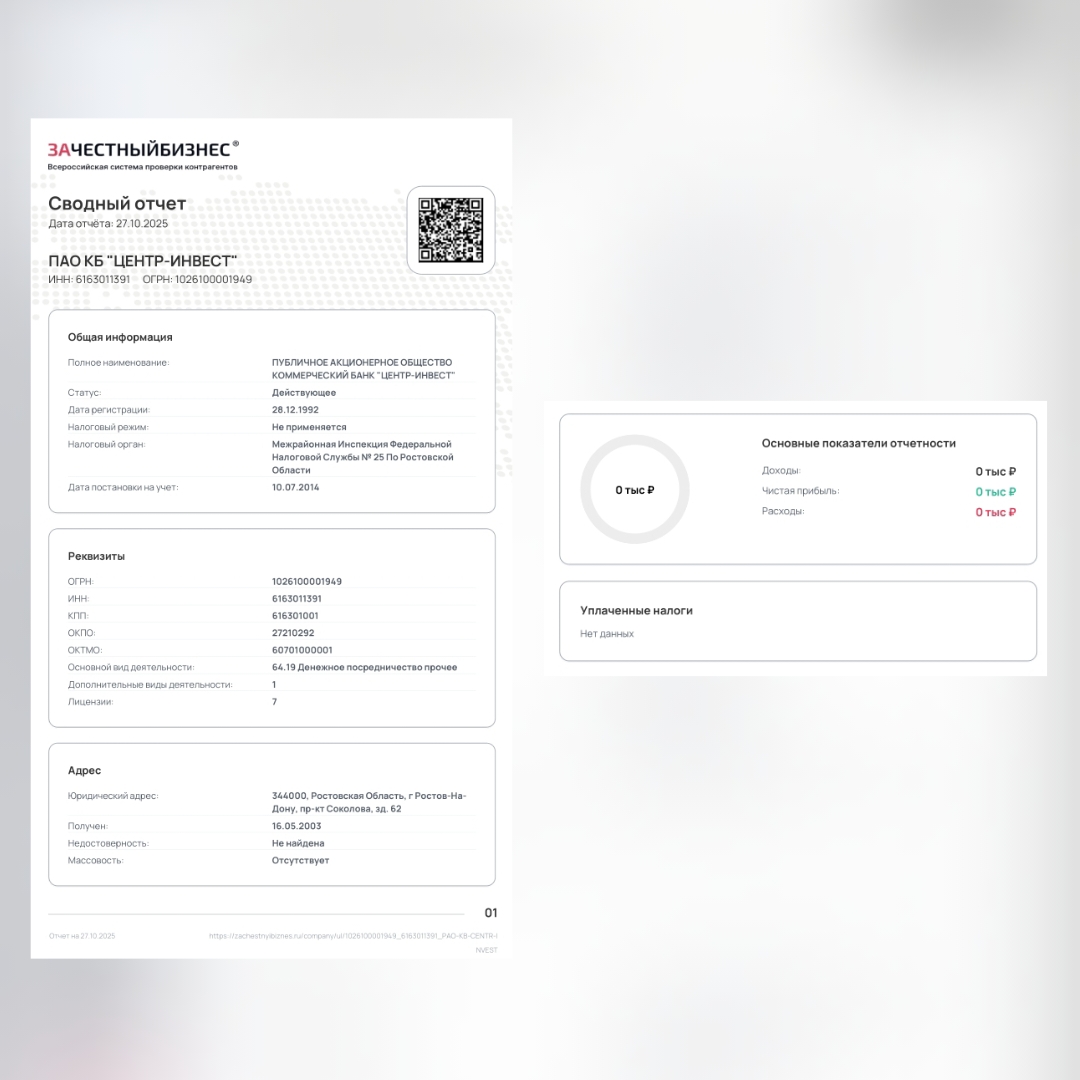 Нарушения ФЗ в ПАО КБ Центр-Инвест, Ч. 2