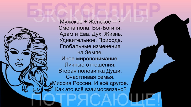 Дорогой читатель, возможно то, что вы прочтете в этой статье, удивит вас, а у некоторых может вызвать даже возмущение и протест. Но не спешите делать преждевременные выводы при поверхностном восприятии информации. Проанализируйте ее с нейтральной точки зрения, а не с позиции Эго женского или мужского пола. То, что описано здесь действительно может перевернуть ваше представление о мужском и женском. Люди долгое время жили в мире «перевертышей» и их миропонимание основывалось на «зеркальном отражении» естества, где правое это левое, а левое это правое. Отвлекитесь от мира в «зеркале» и посмотрите на реальный.