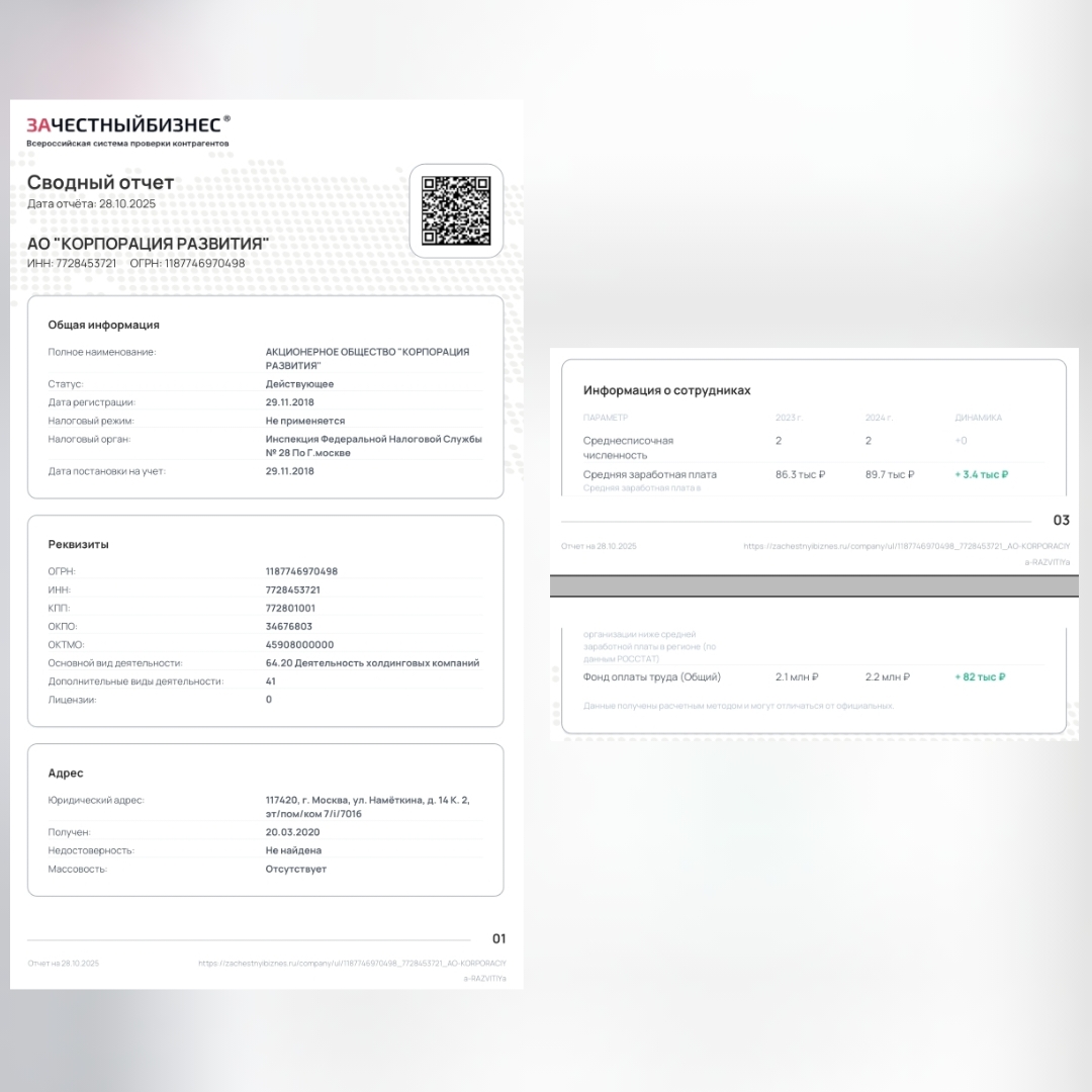 Нарушения ФЗ в АО Корпорация развития в Москве, 1