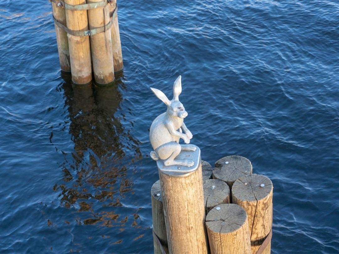 В дальнейшем фигура зайчика была перемещена на другой свайный куст и расположена с другой стороны моста.