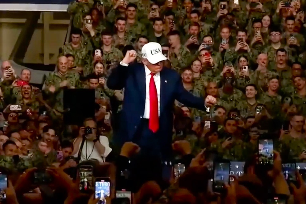 Президент США Дональд Трамп во время визита в Японию посетил военную базу Йокосука и выступил перед моряками авианосца George Washington. Среди прочего, он заявил о силе американской армии, а также станцевал перед военнослужащими.