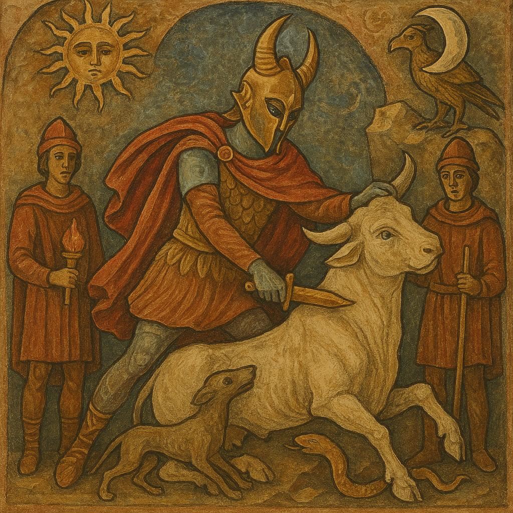Наиболее глубокое и трагическое сходство заключено в мифе о жертве. Согласно данмерскому вероучению, Неревар был предан своим соратником Даготом Уром и убит в битве на Красной Горе. Его смерть стала искупительной жертвой и одновременно моментом рождения нового религиозного порядка — Трибунала[4]. Этот сюжет о предательстве, убийстве и последующем обожествлении героя находит прямую аналогию в митраизме. В римских мистериях центральным сакральным образом было так называемое «тавроктония» — жертвенное заклание быка Митрой. Этот акт, совершенный не по своей воле, но по велению высшего бога Солнца, имел космогоническое значение: из тела быка возникла вся вселенная, а его кровь дала жизнь всему сущему[5]. Неревар, подобно митраистскому быку, становится божеством через насильственную смерть, которая, однако, ложится в основу нового мира (для Морровинда — эпохи Трибунала).