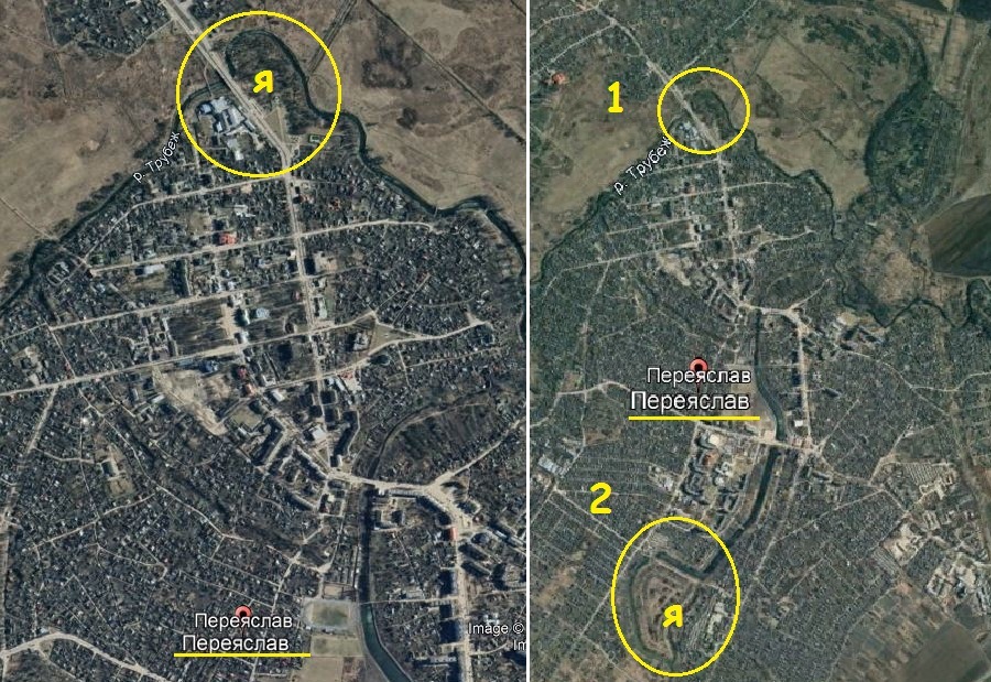 Интересно, что похожие названия ПереЯслав и Переславль(Залесский) отличаются именно вставкой буквы "Я". К тому же, названия топонимов с "Ь" знаком на конце обычно указывает на остров или глубокий полуостров, входящий в состав гидронима. Например Переславль-Залесский имеет городище, окружённое рвом(остров), а город Пермь расположен у мысов в виде "звезды"(полуострова) http://proza.ru/2025/09/26/83.