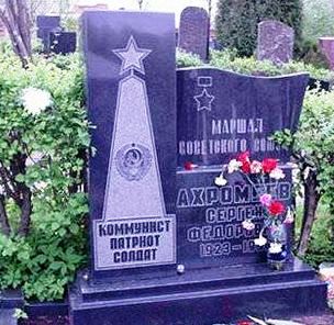 Его похоронили 01 сентября 1991 года на Троекуровском кладбище (участок № 2). Героя Советского Союза, маршала Советского Союза хоронили тихо, в присутствии друзей и родственников.