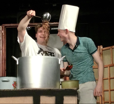 Как вы думаете, какая из сцен спектакля запомнилась мне больше всех? Конечно, та, в которой утомленные отдыхом у реки друзья начинают готовить себе ужин… Современных детей, я думаю, очень удивило, что Вовкина мама так вот запросто оставила двух мальчишек одних на даче, да ещё и об еде для них как следует не позаботилась… Что я могу на это сказать? Другое тогда было время. И ключи от квартир мы на шее на веревочках носили; и старушек заботливо через дорогу переводили… Летом смолу жевали, зимой сосульки на вкус и холод дегустировали. А это — гораздо круче, чем кашу варить да пескарей в печке жарить!