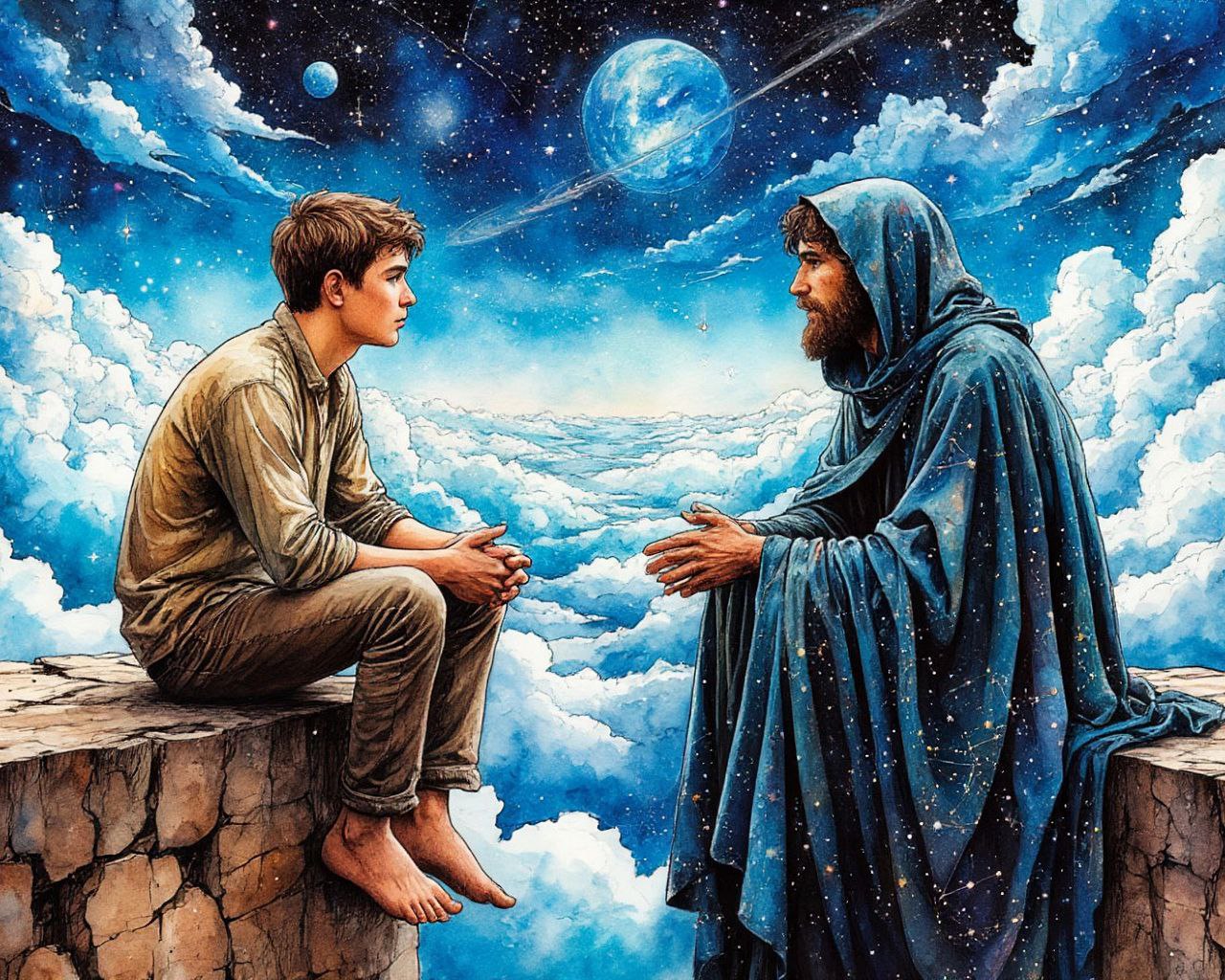Вздохнул он глубоко, заглянул в синюю даль, словно она могла дать ответ, потянулся по привычке в карман, да вдруг вспомнил, что тут-то нет того, что он в кармане искал. Не положено. Да и карманов-то нет. Как и брюк. Странно, что земные привычки тут сразу не отпускают. Может, со временем. Да тут и времени-то нет…