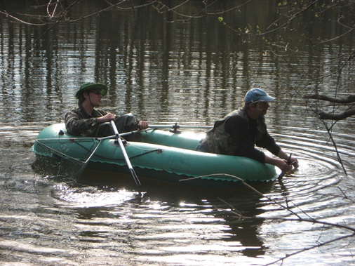 Наконец-то поймали двух щучек – грамм на 700. На жерлицу и на кружок (!). Жерлиц мы с Андреем поставили двенадцать, но щука не активна.