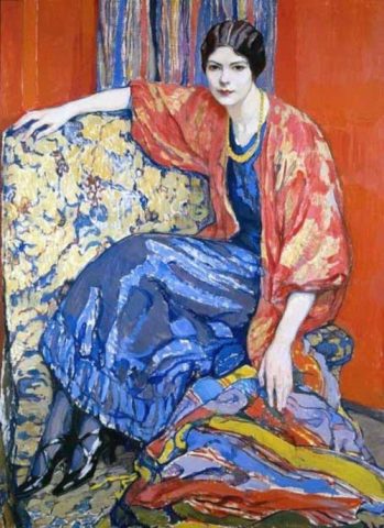 — Да, в этом портрете поразительно и смелое цветовое решение, и тонкий психологизм. Молодая женщина в синем атласном платье и красной шёлковой блузе открыто смотрит на зрителя. Ткани её одежд почти осязаемы благодаря мастерски переданной структуре. Но ещё отчётливее ощущается настроение модели, её внутренний мир.