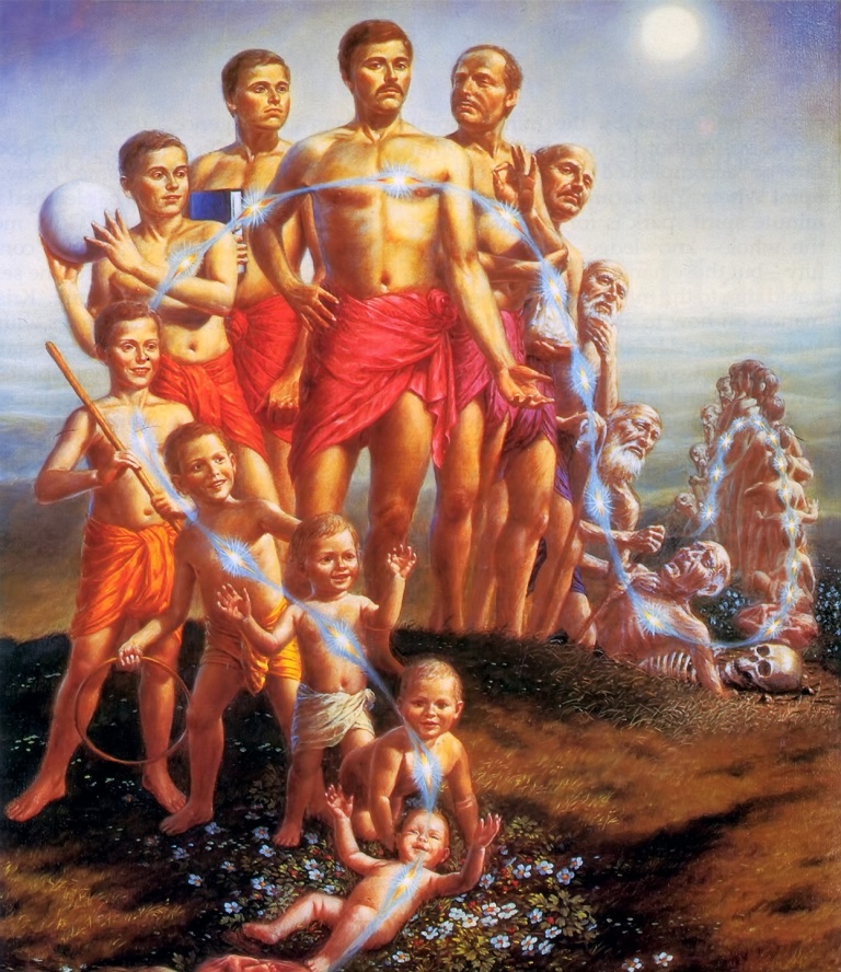 Разве мог бы понять современную классическую философию шудра в Индии, абориген в Австралии или бушмен в Африки? Поэтому сложнейшие вечные и неизменные законы мироздания были утрированы до крайне примитивной сказки ради того, чтобы древний человек верил: после смерти добро награждается, а зло наказывается. Люди на Земле два или три тысячелетия назад могли воспринять глубочайшие законы Вселенной, научные знания о природе в символической форме - мифа, легенды, сказки или былины, песни народного эпоса. С извращением глубокого знания диалектики эволюционного развития высших духовных принципов человека, его духовной триады - духа, сердца и разума был утерян высший смысл жизни человека на земле. Если из тела человека душа перейдет в тело животное, что будет дальше? Из тела животного душа человека не может уже вернуться в тело человека, ведь животное живет инстинктами и не может совершать благие дела. На протяжении прошлых эпох истории человечества люди или слепо верили религиозным догматам и предубеждениям или не верили им вовсе. Если жизнь одна и души нет, то надо брать от жизни всё по максимуму, все материальные блага, привилегии и удовольствия жизни. Что человека ждет за порогом смерти?