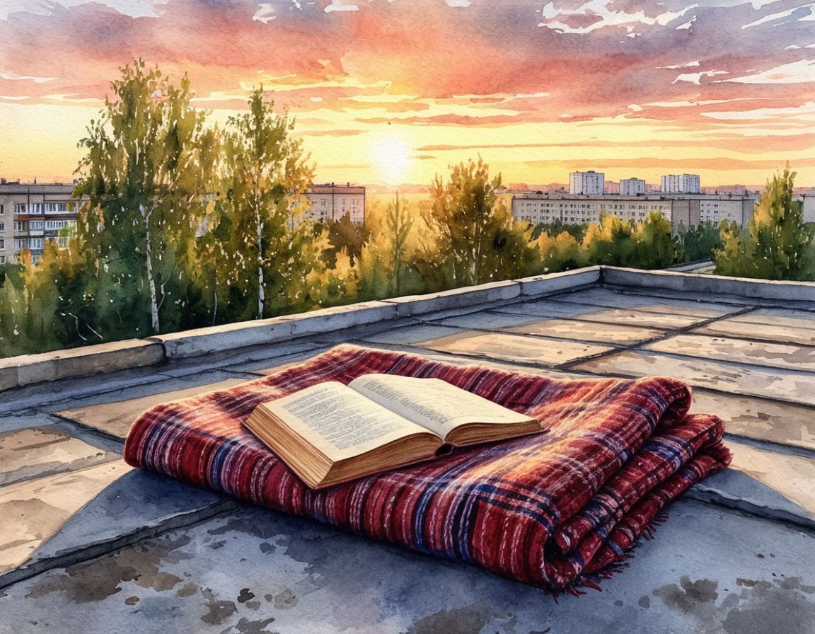 Вечером, пока ещё не стемнело, решаем снова отправиться на крышу. Дом берёт плед и «Маленького принца», и мы поднимаемся наверх.