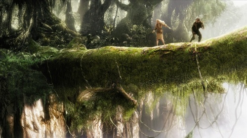 Преодолев преграду, пропасть, через гигантское дерево, ствол дерева, переброшенный через пропасть, они оказались на другой стороне.