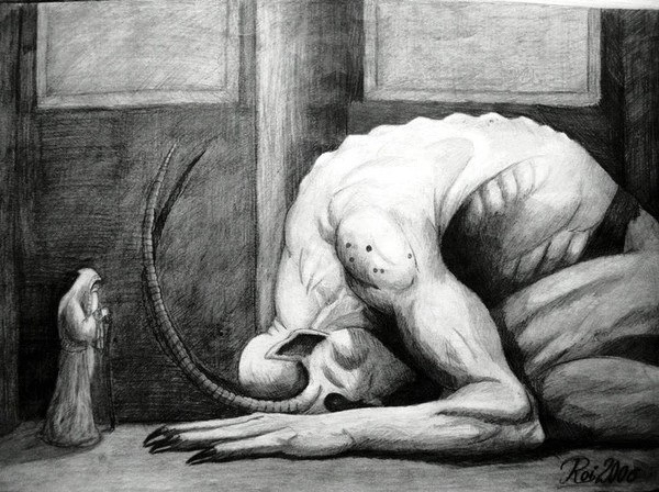 Картина - символ, выразительна - триумф Силы Света и сознания над страхами. Страхи рисуются мыслями огромными, всесильными и когтисто-рогатыми, несущими соблазны, искушения и смерть. Страхи наделены человеком энергией, которую он не сумел использовать в божественном курсе. Но он же мигом способен забрать свою силу природную изначальную. Осознанностью и самоисследованием. Но ты, каждый - абсолютен и находишься ДО них, состоишь из чистоты Души, Сознания и Ведения. Из Любви - Творение, Творящий и Творимое. Любовь не знает страха, Он ей подчинён, вторичен, опознан ею, принят, как слабость. Страх ей служит.