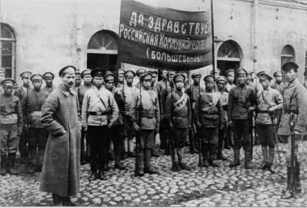 Одной из особенностей красного движения было включение в Красную Армию значительных групп иностранцев. В апреле 1918 года декретом Совнаркома всем находящимся в России иностранцам было разрешено принимать советское гражданство, открыв путь к созданию так называемых "интернациональных частей". Уже к июню того же года в более чем 90 городах страны были организованы национальные отряды, батальоны и целые полки. Помимо этнических россиян, сюда входили венгры, австрийцы, чехи, китайцы, немцы, корейцы и поляки. Общая численность иностранных добровольцев составила примерно 300 тысяч человек.