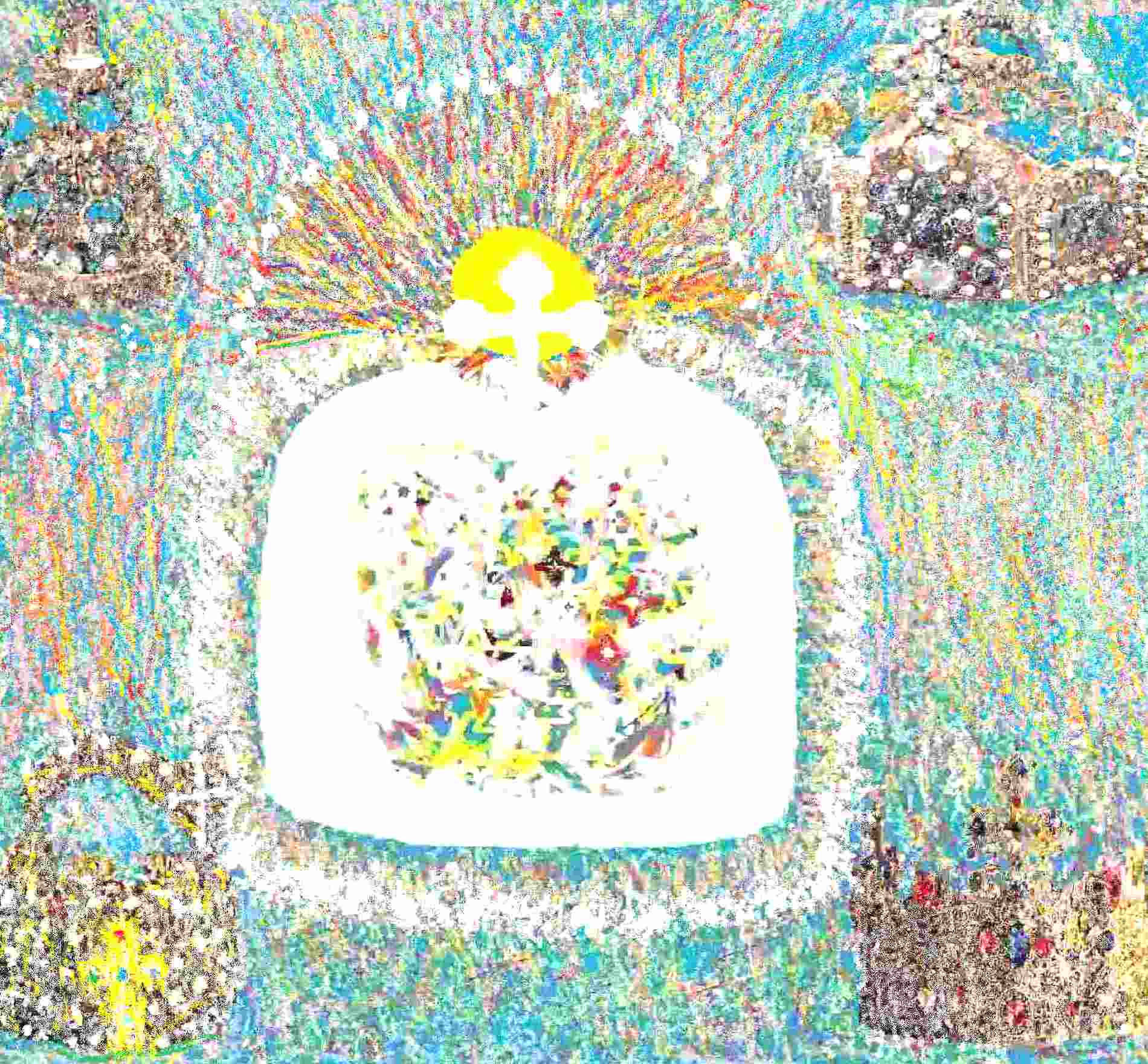 Небесные алмазные венцы мучеников, святых, страстотерпцев, отшельников, пророков, праведников, воинов Христовых, увиденные во время Иисусовой молитвы. Изображение соответствует потусторонней реальности лишь в той мере, в которой возможно в скудном радужном спектре отобразить тысячи ярких, живых, трепещущих, переливающихся красок грядущего Рая, а где-то - в трепетном полумраке - хранятся эти короны, дожидающиеся Истинных Повелителей мира, царей, для которых единственный царь - это Иисус, вставших над миром,одержавших невидимую победу над страстями, бриллиантовые короны,овеянные свежестью, покоем, торжеством и благоуханием покрытых утренней бриллиантовой росой золотых ландышей в чистом поле, пылающих святостью в лучах восходящего Солнца Правды! На венцах начертано - ПОБЕДА НАД ЗЛОМ!!!