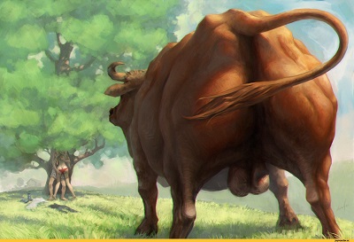 Дальше – больше. Стадо с одной стороны будто распахивается и на сцене появляется мужеский представитель коровьего племени – красавец-бык. И что-то в Коле ему сильно не по душа. Наливает глазки краснотой, копытом дерн дерет и взревывает, мол шел бы ты человече. С радостью бы, да не куда! Коровы никуда не делись и смотрят с интересом, как высокородные испанские синьорины.