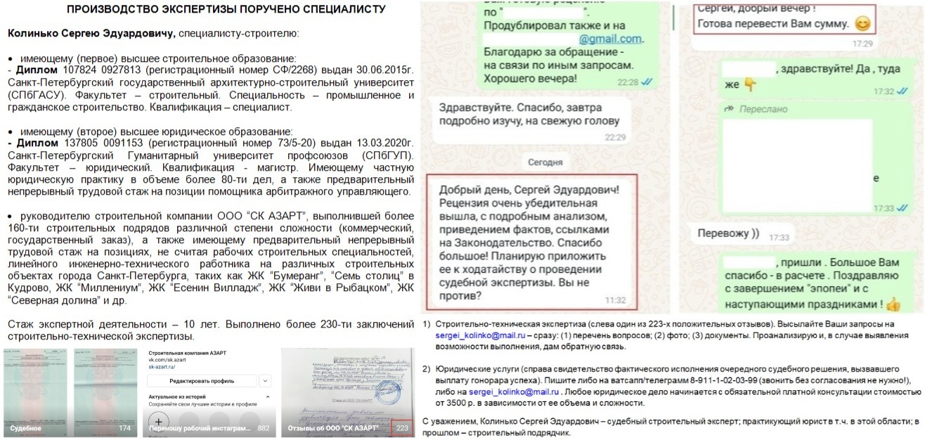 Стаж экспертной деятельности – 10 лет. Выполнено более 230-ти заключений строительно-технической экспертизы.