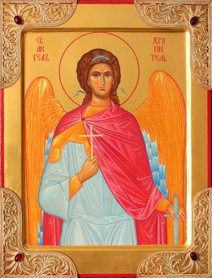 «Ангеле Божий, Хранителю мой святый, живот мой соблюди во страсе Христа Бога, ум мой утверди во истеннем пути, и к любви горней уязви душу мою, да тобою направляем, получу от Христа Бога велию милость.»