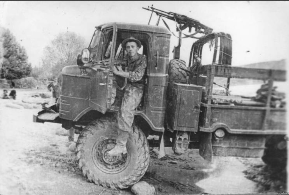 - Касиян, смари! - Залазишь вот сюда, между кабиной и кузовом на запаску. Пулемёт на сошку ставь прямо на крышу кабины. Это у нас в автороте считалось самым казЫрным местом. Ты прикрыт со всех сторон, тебе стрелять удобно и ни одного колеса под тобой нет. Если на мину наедем, тебе нихера не будет.