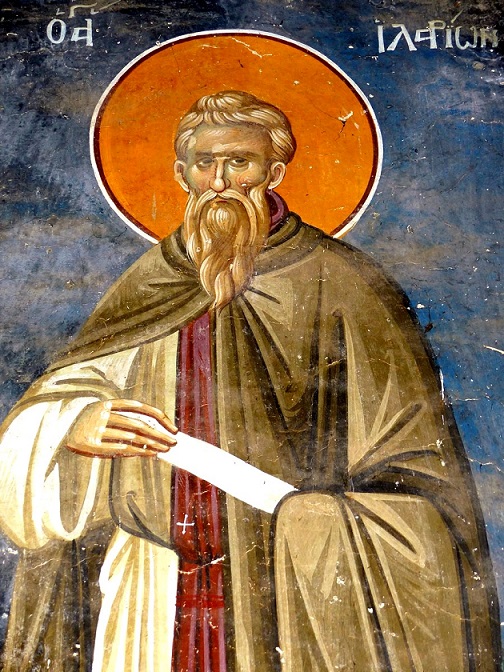 Преподобный Иларион Великий родился в 291 году в палестинском селении Тавафа. Его послали для изучения наук в Александрию, где он познакомился с христианами и принял Святое Крещение. Услышав об Ангельской жизни преподобного Антония Великого (память 17 января), Иларион отправился к нему, чтобы научиться угождать Богу. Вскоре Иларион возвратился на родину. Родители его уже умерли. Раздав имущество родственникам и нищим, Иларион поселился в пустыне около города Маиума. Преподобный усиленно боролся с нечистыми помыслами, смущавшими ум и распалявшими плоть, побеждая их тяжелым трудом, постом и прилежной молитвой. Дьявол устрашал святого призраками и привидениями. Во время молитвы святой Иларион слышал плач детей, рыдание женщин, рев львов и других зверей. Преподобный понимал, что эти ужасы наводят бесы, чтобы прогнать его из пустыни, поэтому пересиливал страх с помощью усердной молитвы.
